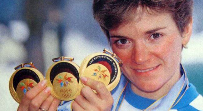 И последнее. Выдающаяся советская и российская лыжница Лариса Лазуткина стартовала на четырёх зимних Олимпийских играх - во французском Альбервилле-1992, норвежском Лиллехаммере-1994, японском Нагано-1998, американском Солт-Лейк-Сити-2002, где завоевала 10 медалей (6 золотых+3 серебряных+1 бронзовую). Но в США она не прошла допинг-контроль и была лишена трёх завоёванных медалей - золотой и двух серебряных, запечатлённых на этом снимке.
