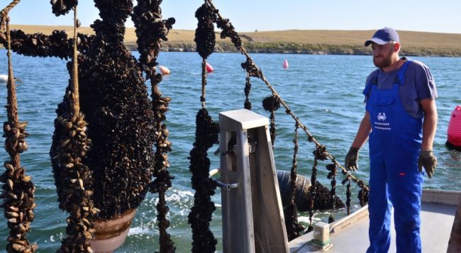 - По сути это - большой огород. И если им не заниматься, всё утонет и зарастёт губкой и морским виноградом, - объясняет начальник производства устрично-мидийной фермы Денис Пономаренко. - Мидия более-менее самостоятельный моллюск, приспособленный к крымским условиям. А вот устрица - это вселенец, в своё время привезённый сюда из Франции. Она требует постоянного внимания и ухода.