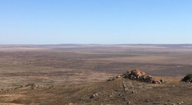 Следы стены простираются на десятки, а то и сотни метров. Фото автора. Побережье Чёрного моря на Керченском полуострове - это настоящее сокровище. Но только для тех, кто любит родной край, интересуется его историей. Здесь множество удивительных мест, каждое из которых заслуживает долгого рассказа. Многих привлекает в первую очередь мыс Опук. Он не только овеян легендами, но ещё и связан с большим количеством загадок. Начнём с того, что есть мнение - мыс Опук раньше на четыре километра простирался вперёд в море. Потом движения земной коры привели к землетрясениям, и теперь мы видим мыс в несколько укороченном виде. Словно подтверждение этой теории, высятся вдали Скалы-корабли. Пока к ним не проводятся экскурсии, но они тоже считаются частью Опукского заповедника. Несколько слов о посещении этих уникальных мест. Жители полуострова могут сделать это совершенно бесплатно. Нужно зайти на сайт, оформить специальный пропуск буквально за минуту и можно собираться в путь. Кстати, сотрудники заповедника на месте, у кассы, настаивают на том, чтобы крымчане не тратили деньги, а прямо с телефонов сделали все необходимые манипуляции. Действительно, это происходит очень быстро. И отдельно хочется поблагодарить сотрудников ФГБУ «Заповедный Крым» за то, что они всё подробно объясняют и всячески помогают советами туристам. Можно выбрать один из открытых на данный момент маршрутов: «Приозёрный» и «Урочище Опук». При этом второй доступен только в сопровождении экскурсовода. Гулять самостоятельно, где душа пожелает, нельзя. Да и смысла нет. Сотрудник ФГБУ «Заповедный Крым» показывает основные видовые точки, делится ценной информацией. Итак, если вы отправились в путешествие, то вскоре увидите остатки древней стены. Она тянется от низменной части около села Яковенково на мыс. Когда-то это была часть системы, защищающей от врагов. Тут же можно услышать легенду о том, почему Опук часто называют «Горой двух удодов». Якобы в древности тут находилось богатое поселение. И действительно, существовал город Киммерик. Однако неизвестно, идёт ли речь именно о нём. Тут жили скромные и трудолюбивые люди, никому не делавшие зла. Особенно туристам нравится вид с мыса Опук на Кояшское озеро. Фото автора. Однажды недалеко от селения потонул во время бури корабль. Спаслись только две женщины, которых добрые местные жители поселили в своих домах. Старшую назвали именем, которое звучало как «О», а младшую - Пука. Они всегда были вместе, поэтому их стали называть «О-Пука». Однако зависть к мирной жизни счастливых людей не давала им покоя. Постепенно от дурных дум начала меркнуть их красота. Тогда они стали наряжаться в пёстрые платья, румянить щёки, носить диковинные головные уборы. К счастью, однажды селение посетил мудрец. Он был так возмущён поведением женщин, что превратил их в двух птиц - они стали удодами. С тех пор мыс Опук так и называют. Что до поселения Киммерик, то его остатки можно увидеть на западном склоне горы Опук, примерно в 50 километрах к юго-западу от современной Керчи. Считается, что первыми тут появились милетские колонисты. Теперь здесь можно увидеть остатки крепостных куртин, следы жилой и хозяйственной застройки, даже один подвал. Однако эти следы прошлой цивилизации пока скрыты от глаз туристов. Частично мыс Опук занят военными - это не сиюминутная н