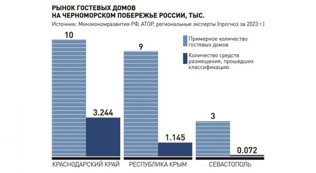 Туристические ассоциации Крыма и Кубани подготовили поправки к законопроекту о проведении эксперимента по легализации гостевых домов, который Государственная Дума приняла в первом чтении, сообщил корреспондент «Российской газеты». Эксперимент планируют начать с 1 апреля 2024 года в Крыму, Севастополе и Краснодарском крае, где тысячи таких средств размещения сейчас работают «в тени». Что это даст и захочет ли такой бизнес легализовываться? Авторы законодательной инициативы предлагают приравнять гостевые дома к отелям категории «без звёзд». Они должны будут войти в реестр классифицированных гостиниц, горнолыжных трасс и пляжей Минэкономразвития России и получить уникальный номер. Рекламировать свои услуги без указания этого номера будет запрещено. Классификацию на категорию «без звёзд» смогут пройти гостевые дома, в которых не более 15 номеров, а общая площадь не превышает 1000 квадратных метров. Дом должен стоять на кадастровом учёте и располагаться на участке, предназначенном для индивидуального жилищного строительства. Также он должен соответствовать требованиям, которые предъявляются к средствам размещения «без звёзд». В Крыму большинство таких гостевых домов строилось в украинский период и тогда же вводилось в эксплуатацию. И сейчас их невозможно признать гостиницами по всем требованиям, отмечает уполномоченный по защите прав предпринимателей в Севастополе Илья Пестерников. Раньше такие объекты могли работать как гостевые дома и даже проходили классификацию, объясняет руководитель Ассоциации малых отелей Крыма Наталия Стамбульникова. Но после внесения в 2019 году изменений в статью 17 Жилищного кодекса РФ, когда было запрещено оказывать гостиничные услуги в жилом фонде, такие гостевые дома оказались вне закона. Всего, по оценке эксперта, в Республике Крым около 9000 гостевых домов. В выходе таких объектов из серой зоны заинтересованы и их владельцы, и власти, уверен Илья Пестерников. В Севастополе, по приблизительным оценкам, насчитывается около 3500 мини-отелей, гостевых домов и апартаментов, в которых жильё сдаётся в аренду посуточно. Бюджет теряет от 30 до 50 миллионов рублей в год, из-за того что они не платят налоги. А в реестр классифицированных отелей, которые легально предоставляют гостиничные услуги, входят только 72 севастопольских объекта. - Сейчас я работаю как самозанятый, сдаю посуточно комнаты в своём частном доме, - говорит владелец гостевого дома из Черноморского района Крыма Владимир. - Конечно, я бы хотел открыто оказывать гостиничные услуги, нанять персонал, давать рекламу. Но по закону сейчас не имею права. Налоги для меня вырастут, но пока я не понимаю, насколько. Всё будет зависеть от того, какие поправки к законопроекту будут приняты. Юлия КРЫМОВА, Анна ЮРКОВА.