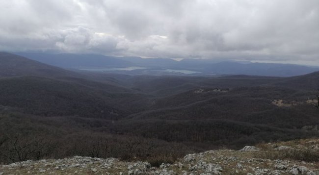 Вид на Байдарскую долину с Сандык-кая. Фото автора. На высоте 837 метров над уровнем моря возвышается гора, которую видно из Байдарской и Бельбекской долин. Когда-то тут стояли башни, было древнее укрепление. Внутри жили люди, и виду из их окон можно было только позавидовать. Вдали от любопытных глаз Сандык-Кая в переводе с тюркского означает гора как сундук. Действительно, издалека можно принять её за этот предмет мебели. При этом кажется, что подняться сюда крайне сложно, даже невозможно. Вроде со всех сторон обрывы, как найти путь? На самом деле, это не так. Забраться на Сандык можно от села Поляна Бахчисарайского района или села Новобобровка в Байдарской долине, под Севастополем. Первый вариант пути считается более лёгким и коротким. Однако маршрутом для школьников его сложно назвать. Всё-таки приходится идти всё время вверх и довольно долго. Зато потом ждёт награда - невероятной красоты вид на две долины: Байдарскую и Бельбекскую. Наши предки по какой-то причине тоже обратили внимание на это место. Возможно, им как раз подошла хорошая обзорность. Потенциальных врагов будет видно со всех сторон. «Раньше в укрепление вела колёсная дорога, вившаяся серпантином по склону и выводившая к главным - западным - воротам. Если присмотреться, то можно увидеть выбитые в камне колёсами повозок колеи. Ещё один вход в укрепление находился с восточной стороны. К нему можно подняться по узкой пешеходной тропке, идущей по скальным уступам к месту, где когда-то находилась калитка», гласит одно из описаний. Само укрепление было на вершине скалы. Оно растянулось на довольно большой территории размером почти 2,5 гектара. Почти со всех сторон эта местность неприступна. Безусловно, это было на руку местным жителям. Захватить крепость просто так какие-нибудь разбойники не смогли бы. Об их прибытии точно сообщили бы воины, охранявшие цитадель. Есть мнение, что именно крепость на Сандык-Кая была самой продуманной с точки зрения обороны. Здесь располагались три линии крепостных стен толщиной около двух метров с шестью прямоугольными башнями. «Их расположили таким образом, что если противнику удавалось прорвать защиту восточного или юго-восточного участка, то атакующие оказывались перед усиленными башнями стенами, которые следовало штурмовать уже в более стеснённых условиях», сообщается в описании. Остатки былых укреплений можно разглядеть среди камней. Фото автора. Тайны под землёй Мы не нашли информацию о масштабных раскопках, которые проводились бы здесь легально. Однако можно не сомневаться, что так называемые чёрные копатели точно тут промышляли. Под ногами много кусков керамики, черепицы. Так и хочется взять лопату и узнать все секреты крепости. Однако делать этого нельзя - противозаконно. Кстати, учёные выяснили, что на Сандык-Кая находилась маленькая церковь. Предположительно в этом месте сейчас стоит крест, который водрузили почти на обрыве энтузиасты. Тут же можно увидеть следы некрополя. Людей хоронили по-простому: вырубали в камне прямоугольные ниши. Останков давно нет, но кто знает, может быть, они и лежат где-то под слоем земли. Пропали и ценные предметы, которые могли бы находиться в гробницах. Много лет назад тут явно промышляли искатели сокровищ. Но после уничтожения княжества Феодоро в крепости толком никто не жил. Зато оценили преимуще