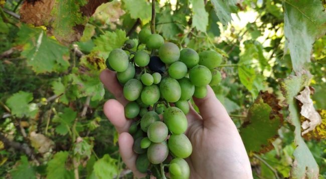 Виноград подвержен болезням, поэтому для хорошего урожая нужно позаботиться о правильном уходе за растениями. Фото автора. О винограде в разные времена сложены десятки, если не сотни, мифов и легенд. Наверное, больше ни одно растение не может похвастаться такой популярностью. Красивое предание гласит, что нежная, но при этом сильная виноградная лоза родилась от Солнца и Земли. Грозди её наливались сладким соком буквально с утра до сумерек. Те, которые успели созреть на рассвете, покрылись розовым румянцем зари. Ягоды, поспевшие днём, украсились золотом полуденного солнца. Грозди, созревшие ближе к закату, окрасились цветами летней южной ночи: восково-чёрным и тёмно-синим. Первый напиток из винограда Когда же появилось вино? Пожалуй, тут тоже не обойтись без легенд, ведь они так интересны и поучительны! Когда Бахус был ещё совсем молод, он отправился в Наксос. По пути он присел на камень передохнуть и у ног своих заметил красивое, но очень маленькое растение, которое только-только вышло из земли. Бахус так им очаровался, что решил взять с собой. Осторожно вынув лозу, юный бог пошёл дальше. Но солнце было жарким, и Бахус стал переживать, что растение погибнет. Тогда он подобрал с земли птичью косточку, вложил в неё росток и продолжил путь. Лоза тем временем начала быстро расти и вскоре переросла косточку. Тогда Бахус подобрал львиную кость, спрятав растение. А оно всё росло и росло. Пришлось найти большую кость осла. К тому времени, когда Бахус дошёл до Наксоса, корни растения стали мощными и обвили кости птицы, осла и льва. Юноша так и посадил его. Вскоре лоза разрослась, на ней появились удивительные грозди. Бог выдавил из них сок и приготовил напиток, которым стал угощать людей. Если они пили немного, то пели, как птицы. Если пили больше - становились сильными, словно львы. Если же продолжали пить дальше, то головы их опускались, как у ослов. Мировое признание Где же родина винограда? Считается, что это Ближний Восток. Там его начали выращивать около 6-8 тысяч лет назад. Интересно, что приблизительно в этот же период виноделием занимались на территории Грузии. Древние египтяне фиксировали с помощью иероглифов информацию о выращивании винограда и производстве вина. Каждый год во всём мире выращивают больше 70 млн. тонн винограда. Это значит, что даже яблок и бананов собирают меньше. Но только около 12% от всего мирового урожая винограда употребляется в свежем виде. Основная масса станет вином. О пользе Максимальная концентрация питательных веществ содержится в косточках и кожуре ягод. Интересно, что в мякоти обычно находится не больше 5% от общего числа антиоксидантов. Виноград - замечательный источник фитонутриентов: преимущественно фенолов и полифенолов. В ягодах содержатся витамины K, A, C и B6. А ещё они богаты тиамином, рибофлавином, ниацином и фолатом. Также можно выделить минеральные вещества (калий, кальций, магний, фосфор, натрий). В гроздьях винограда достаточно большое количество воды, что положительно влияет на гидратацию организма. Пользу приносят и пищевые волокна, углеводы, антиоксиданты, а также белок. Мирицетин и кверцетин (флавоноиды) снижают вредоносность свободных радикалов, замедляют процессы старения. Употребление свежего винограда в пищу повышает уровень оксида азота в крови, что способно снижать риск тромбообразования. Н